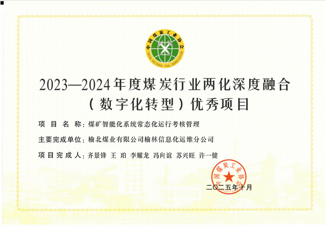 近日,由中國(guó)煤炭工業(yè)協(xié)會(huì)主辦的2025煤炭行業(yè)兩化深度融合推進(jìn)現(xiàn)場(chǎng)會(huì)在陜西榆林召開(kāi)。會(huì)議發(fā)布了2023-2024年度煤炭行業(yè)兩化深度融合(數(shù)字化轉(zhuǎn)型)優(yōu)秀項(xiàng)目及2025年煤炭行業(yè)信息技術(shù)企業(yè)20強(qiáng)榜單。信息化運(yùn)維分公司研發(fā)的“煤礦智能化系統(tǒng)常態(tài)化運(yùn)行考核管理系統(tǒng)”成功入選優(yōu)秀...