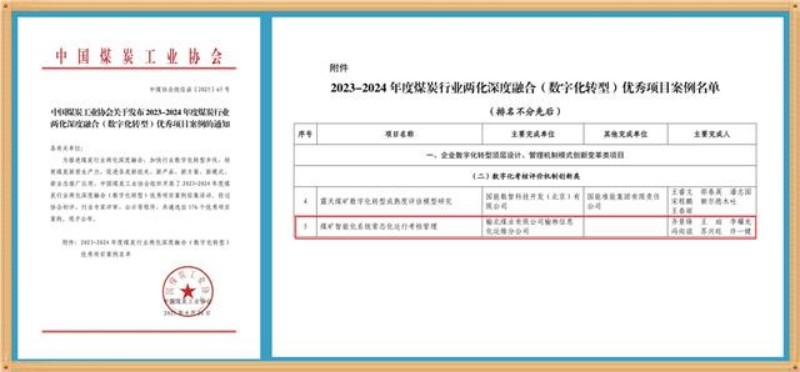 信息化運維分公司獲評煤炭行業(yè)兩化深度融合優(yōu)秀項目案例