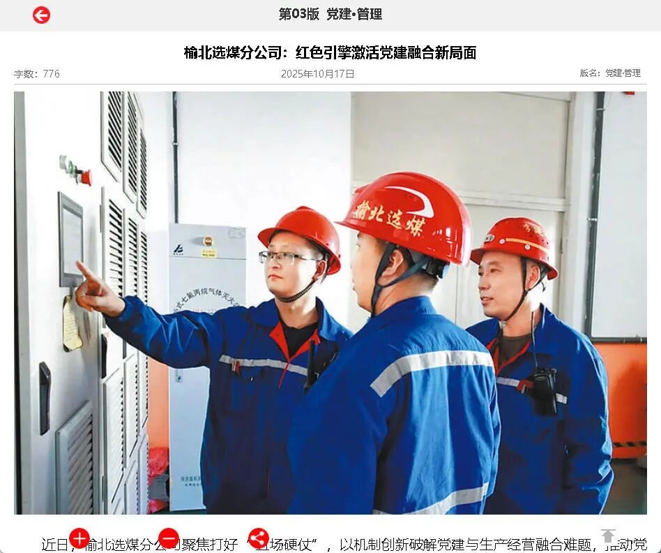 陜煤集團報丨榆北選煤分公司:紅色引擎激活黨建融合新局面