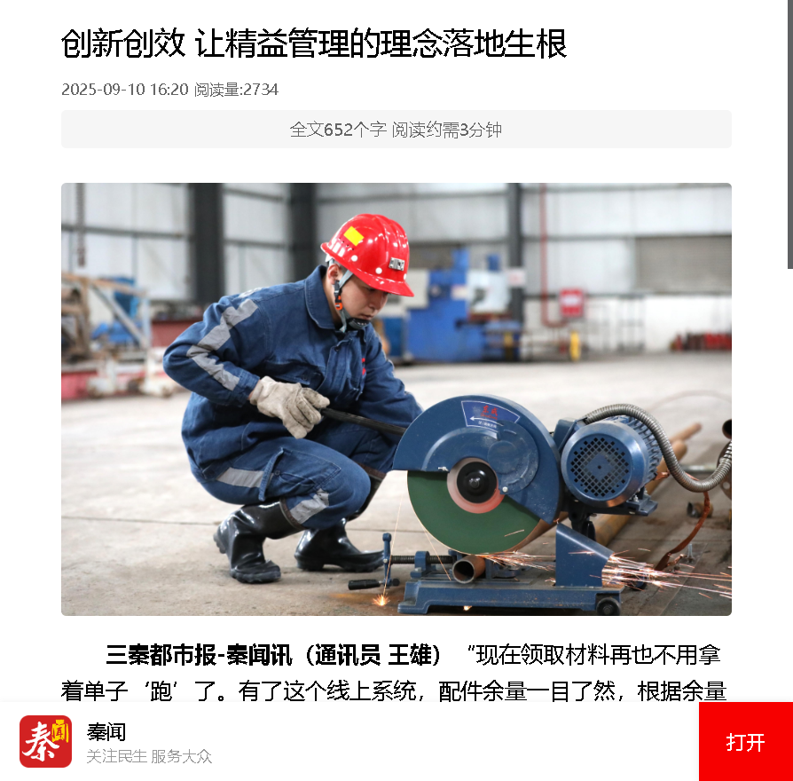 三秦都市報(bào)-秦聞?dòng)嵷鼙庇况喂荆? 創(chuàng)新創(chuàng)效 讓精益管理的理念落地生根