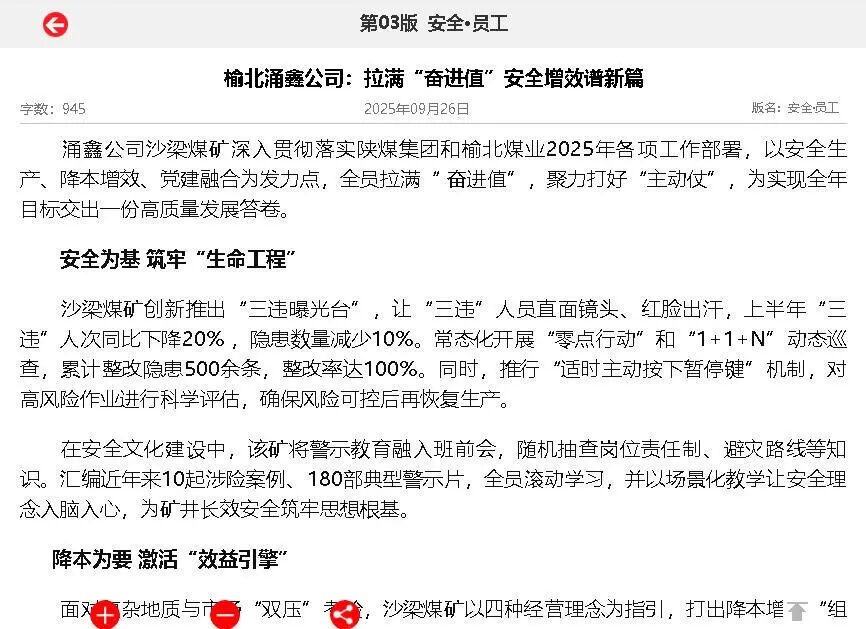 陜煤集團(tuán)報(bào)丨榆北涌鑫公司: 拉滿“奮進(jìn)值”安全增效譜新篇