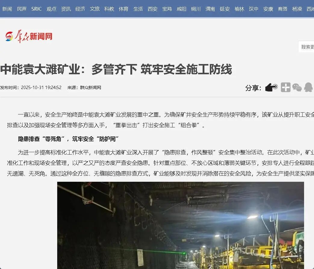 - 群眾新聞網(wǎng)丨榆北中能袁大灘礦業(yè):多管齊下 筑牢安全施工防線11-02